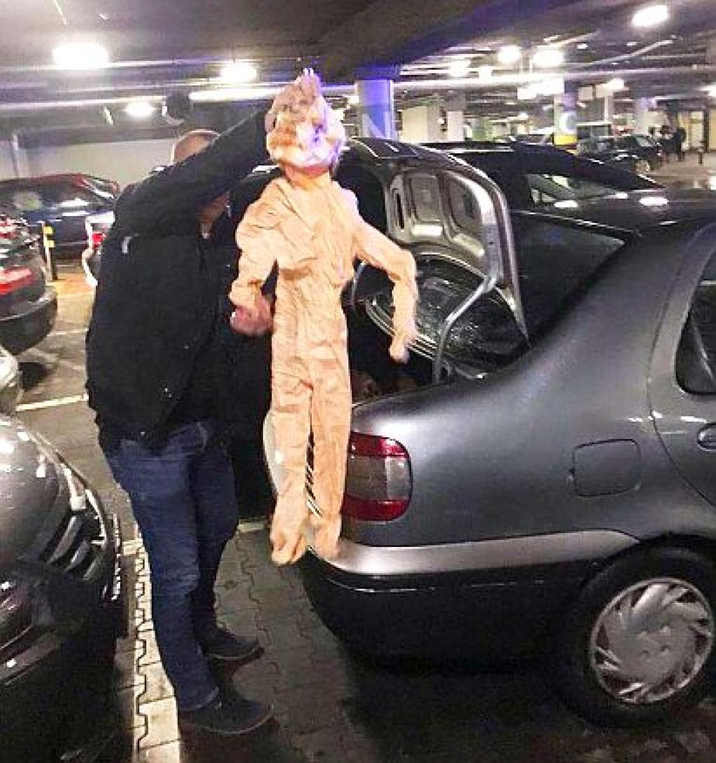W jego aucie zaparkowanym w Galerii ujawniono gumową lalkę ucharekteryzowaną na dziecko.