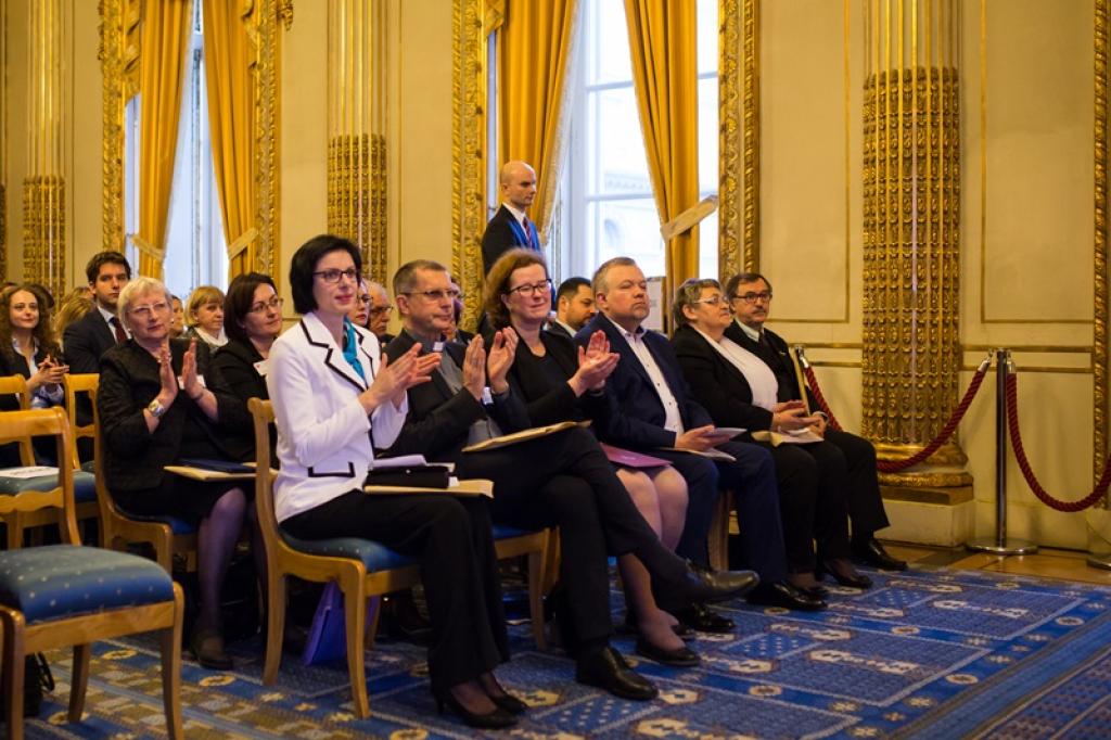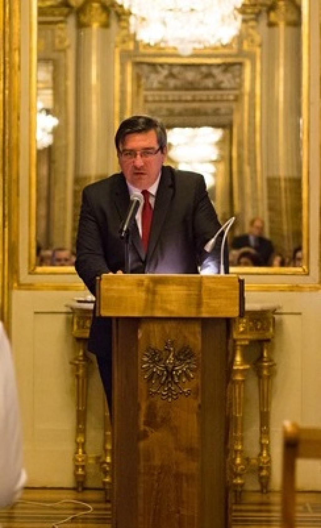Ambasador RP we Francji pan Tomasz Młynarski uroczyście powitał przybyłych na konferencję senatorów Panią Małgorzatę Kopiczko i Pana Łukasza Mikołajczyka, dyrektora Muzeum Wojska Polskiego w Warszawie Pana Adama Buławę, Prezesa Stowarzyszenia „Wspólnota Polska” Pana Dariusza Bonisławskiego, Prezes Macierzy Szkół Społecznych we Francji Panią Danutę Bukszyńską-Lemoyne oraz przybyłych prelegentów, pedagogów i rodziców.