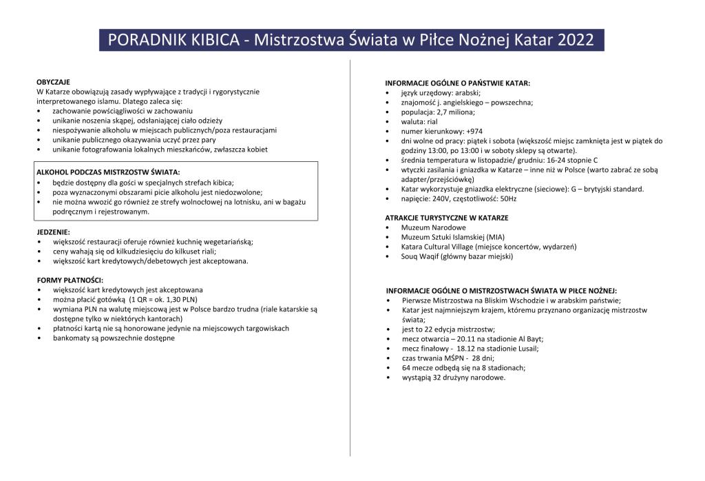 MATERIAŁY: Pobierz Poradnik Kibica Katar 2022