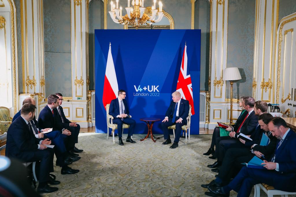 Premier Mateusz Morawiecki w ramach wizyty w Londynie uczestniczył w szczycie szefów rządów Grupy Wyszehradzkiej (V4) oraz Wielkiej Brytanii. Przedmiotem rozmów premierów była inwazja Rosji na Ukrainę i wynikające z niej konsekwencje. Przywódcy omówili skutki konfliktu zbrojnego dla bezpieczeństwa państw europejskich, w tym energetycznego oraz cyberbezpieczeństwa. Rozmawiali również o sposobach wsparcia dla Ukrainy oraz pomocy udzielanej jej obywatelom.