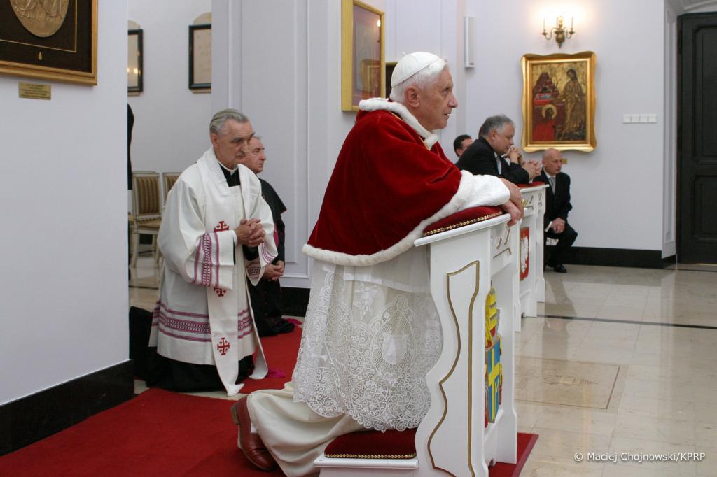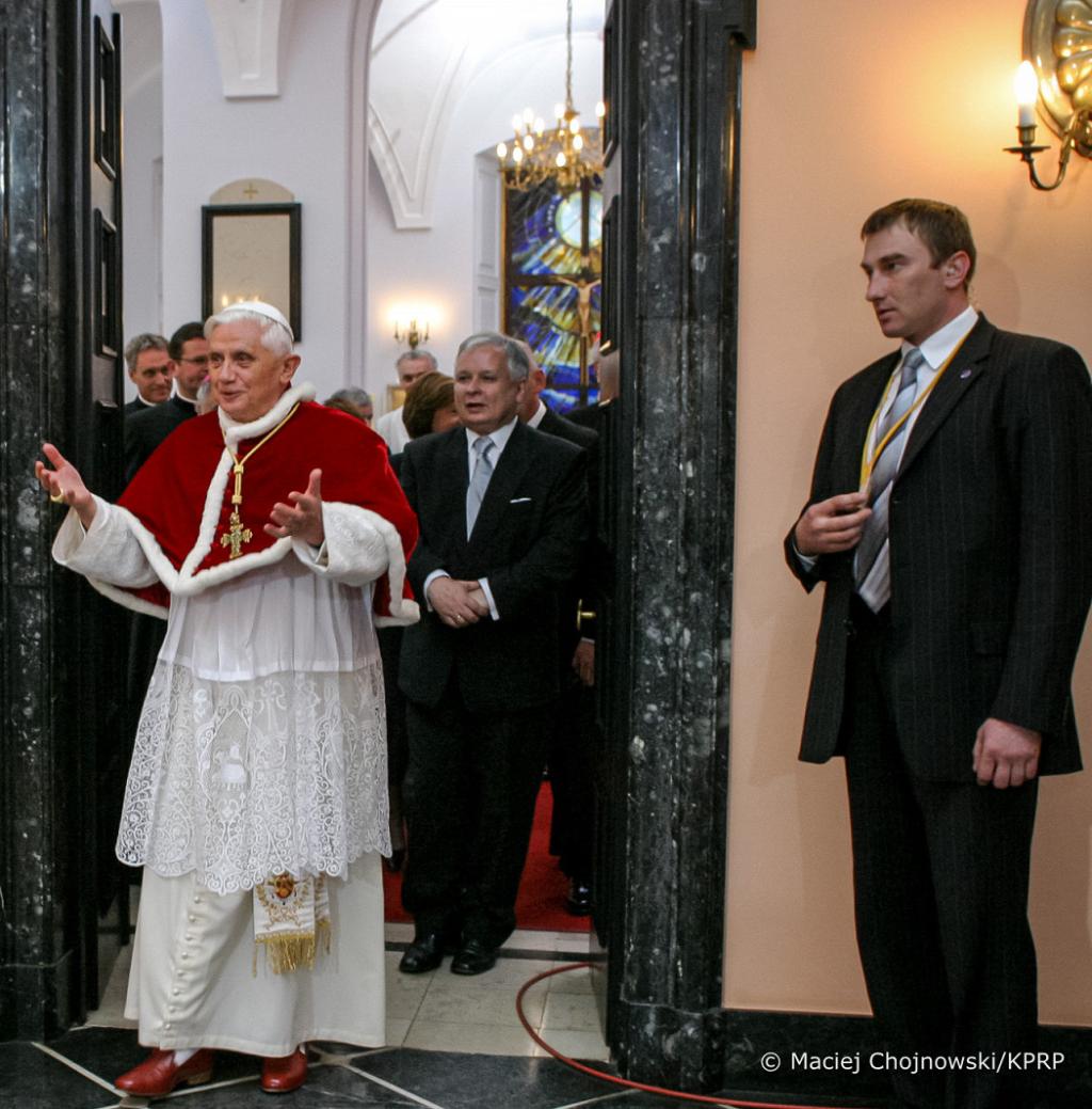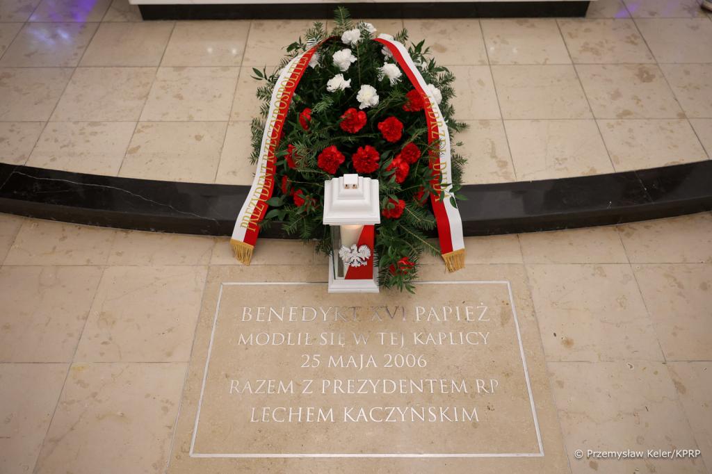 Zapisał się w pamięci jako wielki przyjaciel Polski i Polaków. W maju 2006 roku, w trakcie podróży apostolskiej do Polski, Benedykt XVI odwiedził Prezydenta RP Lecha Kaczyńskiego i Pierwszą Damę Marią Kaczyńską w Pałacu Prezydenckim w Warszawie. W kaplicy Pałacu – w miejscu, gdzie wówczas modlił się papież – obecnie znajduje się pamiątkowa tablica.