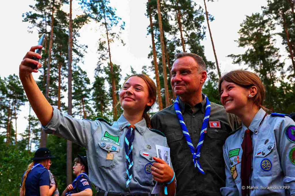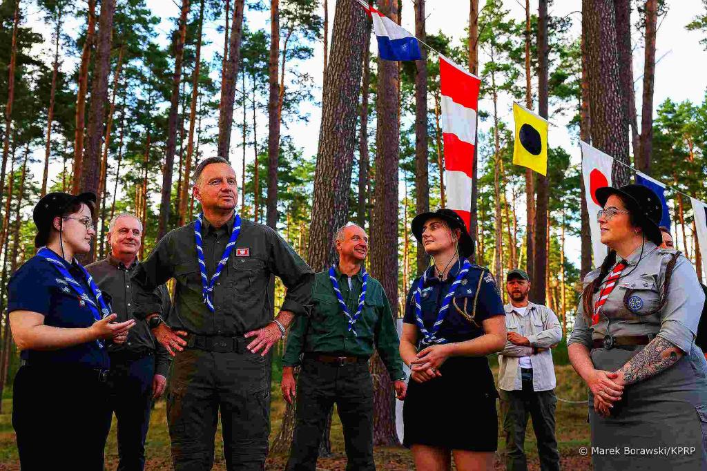 Prezydent na zlocie harcerskim Wędrowniczej Watry „Rozwiń Żagle” w Czernicy w woj. pomorskim.