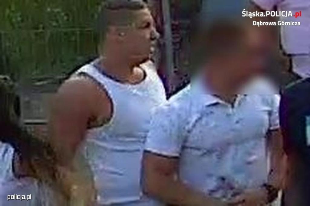 Śledczy z Wydziału Kryminalnego Komendy Miejskiej Policji w Dąbrowie Górniczej poszukują mężczyzn w wieku około 25 - 35 lat, wzrostu około 175 - 180 cm, krępej budowy ciała, ubranych w krótkie spodenki koloru niebieskiego oraz białą i czarną koszulkę bez rękawów, którzy w dniu 19 czerwca 2018 roku na terenie dąbrowskiej Strefy Kibica dopuścili się czynnej napaści na pracownika służby porządkowej.