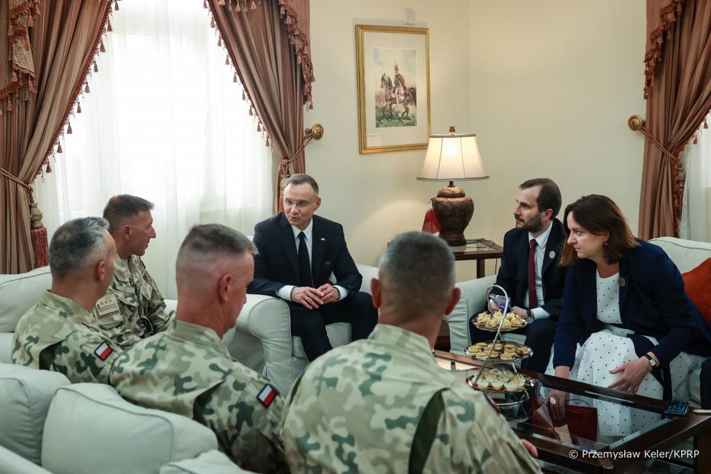 W Dosze Prezydent Andrzej Duda spotkał się z polskimi żołnierzami z Polskiego Kontyngentu Wojskowego w Iraku stacjonującymi w bazie Al Udeid.