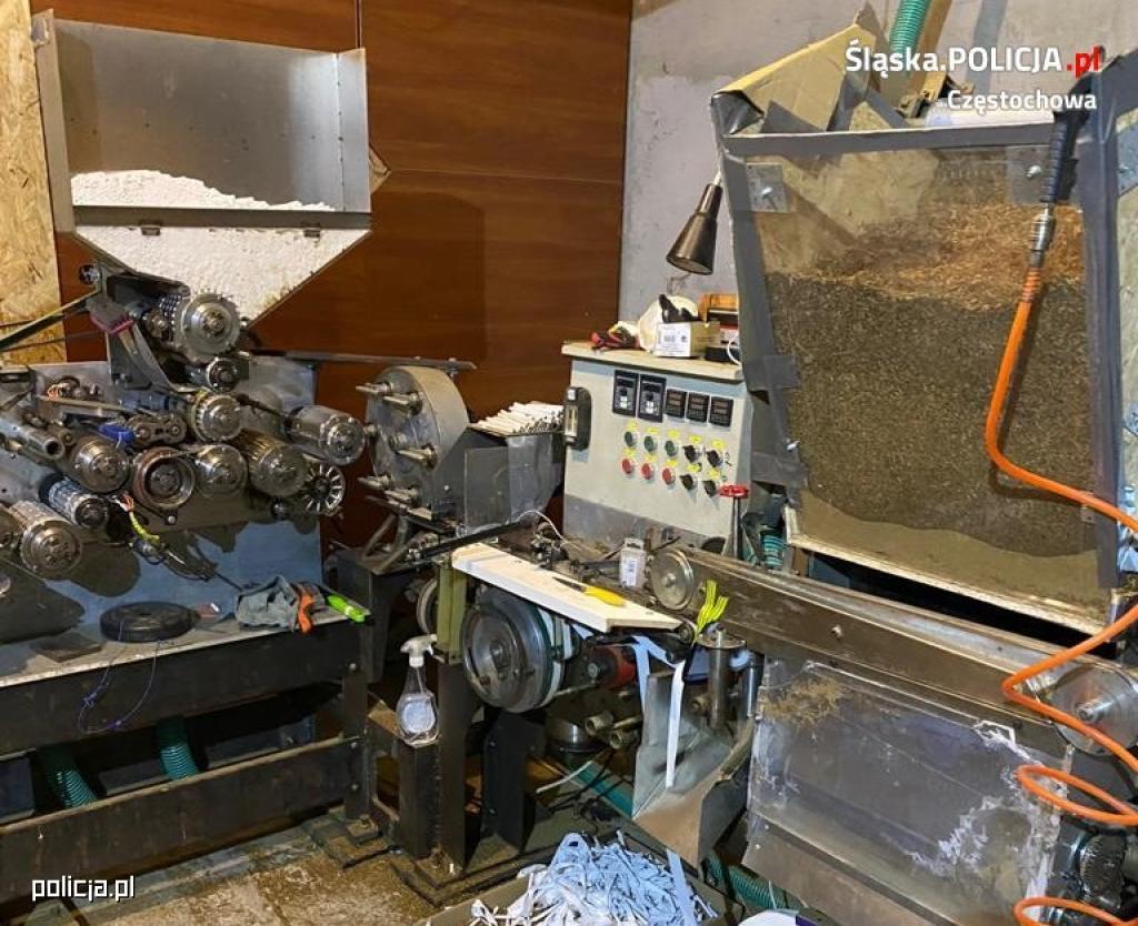 Nielegalna fabryka papierosów była prowadzona na terenie prywatnej posesji. 17 listopada 2020 roku policjanci z Częstochowy wspólnie z policjantami z Samodzielnego Pododdziału Kontrterrorystycznego Policji w Poznaniu zatrzymali 4 mieszańców Warszawy i okolic w wieku 30 – 48 lat, którzy działając w organizowanej grupie przestępczej, trudnili się przestępstwami karno-skarbowymi, narażając Skarb Państwa na straty.