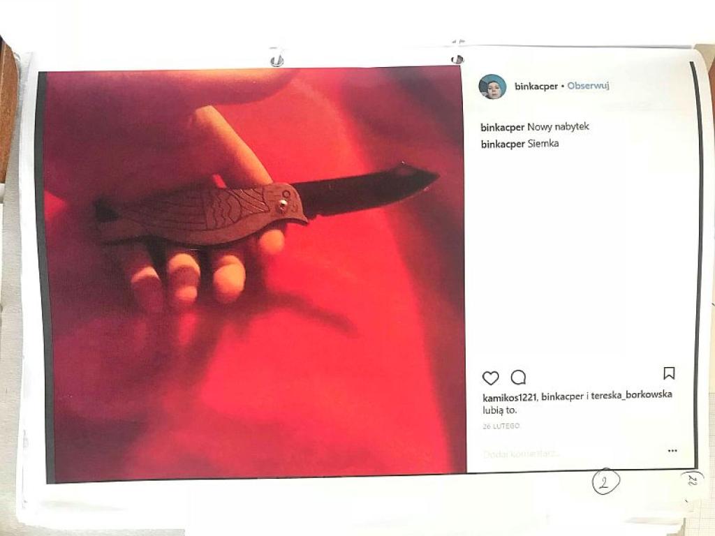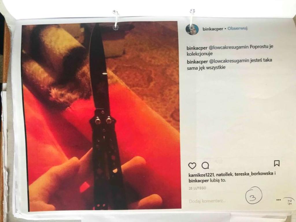 25 czerwca 2018 roku Robert Rewiński uzyskał też zdjęcia trzeciego z nieletnich, będącego znajomym obu już dwukrotnie oskarżanych przez Policję uczniów. Okazało się, że promuje się on w internecie jako "kolekcjoner noży". Zamieścił dwa zdjęcia, na których widać jego dziecięcą dłoń. I noże, którymi można zabijać. Oba są sfotografowane na krwiście czerwonym tle.