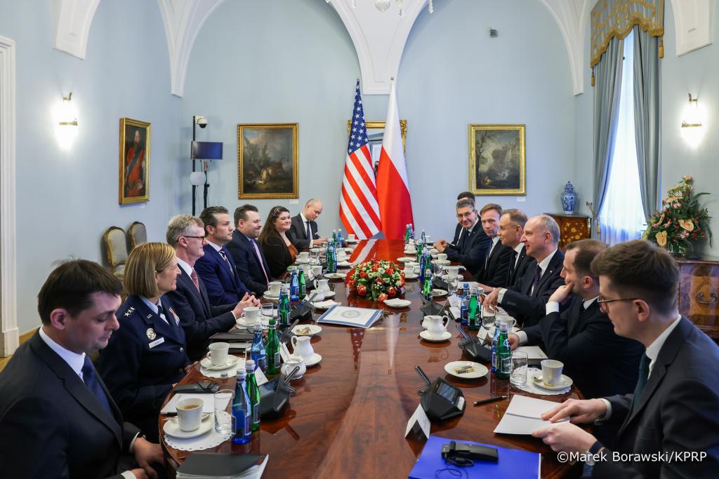Prezydent Andrzej Duda przyjął w Pałacu Prezydenckim Sekretarza Obrony Stanów Zjednoczonych Pete’a Hegsetha. Szef Pentagonu składa wizytę w państwach europejskich związaną z udziałem w formacie Rammstein i w Monachijskiej Konferencji Bezpieczeństwa. Tylko w Warszawie jego spotkania mają charakter bilateralny. – Wierzę, że w Polsce naprawdę powstanie Fort Trump – przekazał dziennikarzom Prezydent po wizycie.