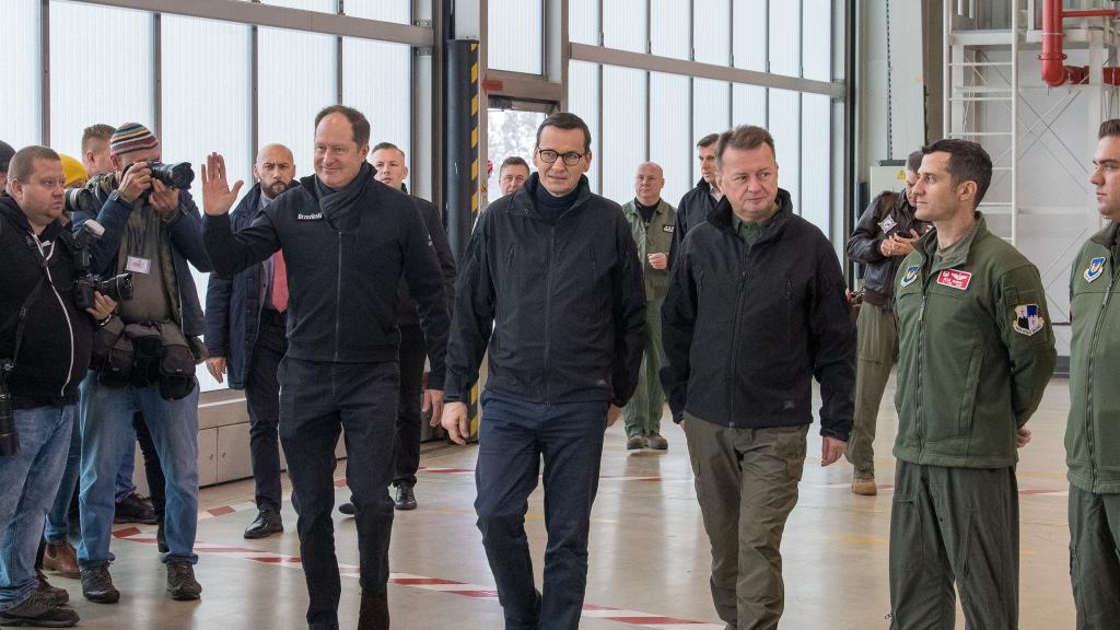 24 października premier Mateusz Morawiecki, szef MON M. Błaszczak oraz ambasador USA w Polsce Mark Brzeziński spotkali się z żołnierzami stacjonującymi w 32 Bazie Lotnictwa Taktycznego w Łasku.