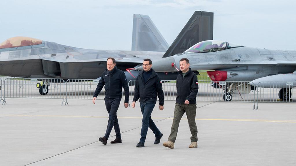 - To właśnie w Łasku żołnierze polskich i amerykańskich sił powietrznych ćwiczą wspólnie na co dzień, osłaniając niebo nad Polską. To jest praktyczny wymiar budowania interoperacyjności między polskimi i amerykański siłami zbrojnymi. Bardzo cenimy sobie obecność sił amerykańskich, w tym sił powietrznych, wyposażonych w nowoczesne samoloty F-22 Raptor. Obecność amerykańskich sił powietrznych, tu w Polsce, jest bardzo ważnym argumentem w polityce sojuszu północnoatlantyckiego, polityce polegającej na odstraszaniu ewentualnego agresora – powiedział wicepremier Mariusz Błaszczak po spotkaniu z polskimi i amerykańskimi pilotami w Łasku.