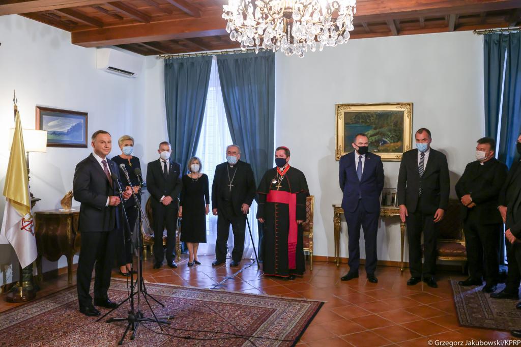 W uroczystości, która odbyła się w Ambasadzie RP przy Stolicy Apostolskiej uczestniczyła też Małżonka Prezydenta Agata Kornhauser-Duda. Prezydentowi towarzyszyli ministrowie Jakub Kumoch i Adam Kwiatkowski.