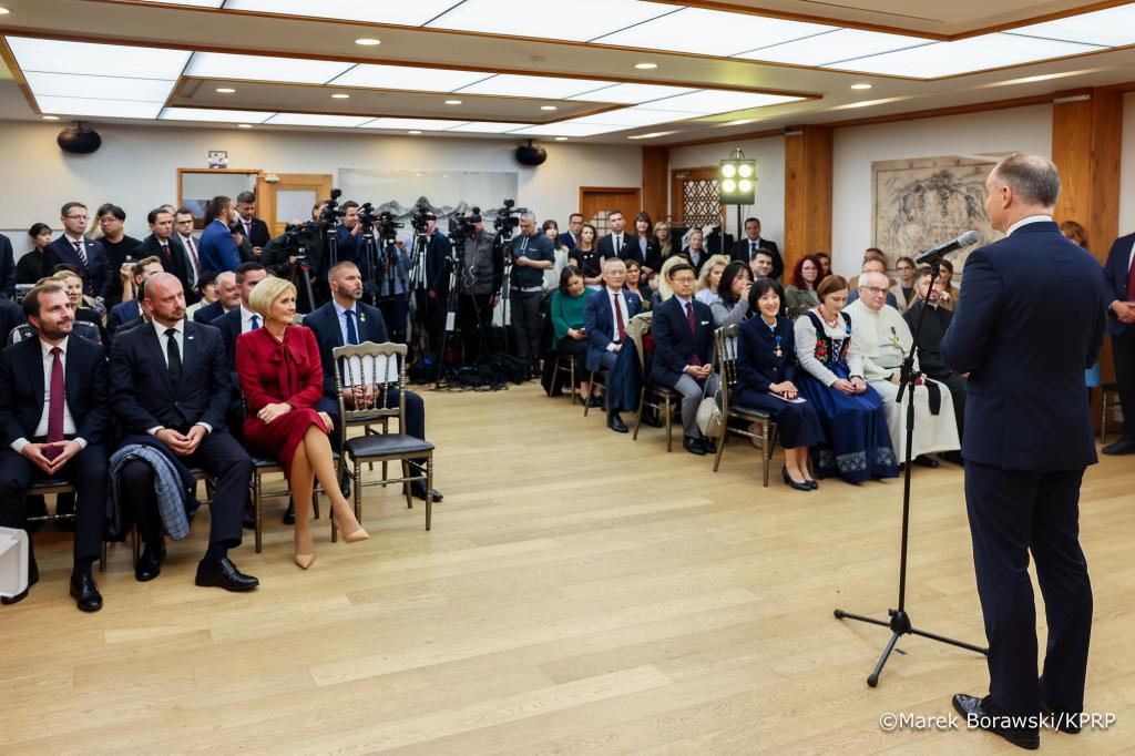 – W różnych obszarach życia i codziennego funkcjonowania świadczycie Państwo tę służbę dla Rzeczypospolitej, dla drugiego człowieka, dla budowania relacji polsko–koreańskich tych międzypaństwowych i tych międzyludzkich – mówił Prezydent, dziękując odznaczonym.
