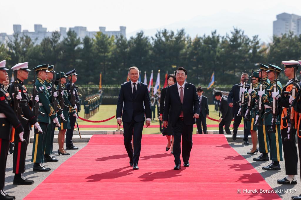 – Podzieliłem się z Prezydentem Republiki Korei moimi niepokojami związanymi z działaniami, które powodują tu, na Półwyspie Koreańskim, wzrost poczucia zagrożenia. Zapewniłem, że Polska jako państwo neutralne będzie ze swojej strony czyniła wszystko, by te niepokoje były jak najmniejsze – i aby pokój na Półwyspie Koreańskim był utrzymany – oświadczył Andrzej Duda podczas wspólnej konferencji prasowej po zakończeniu dwustronnych rozmów.