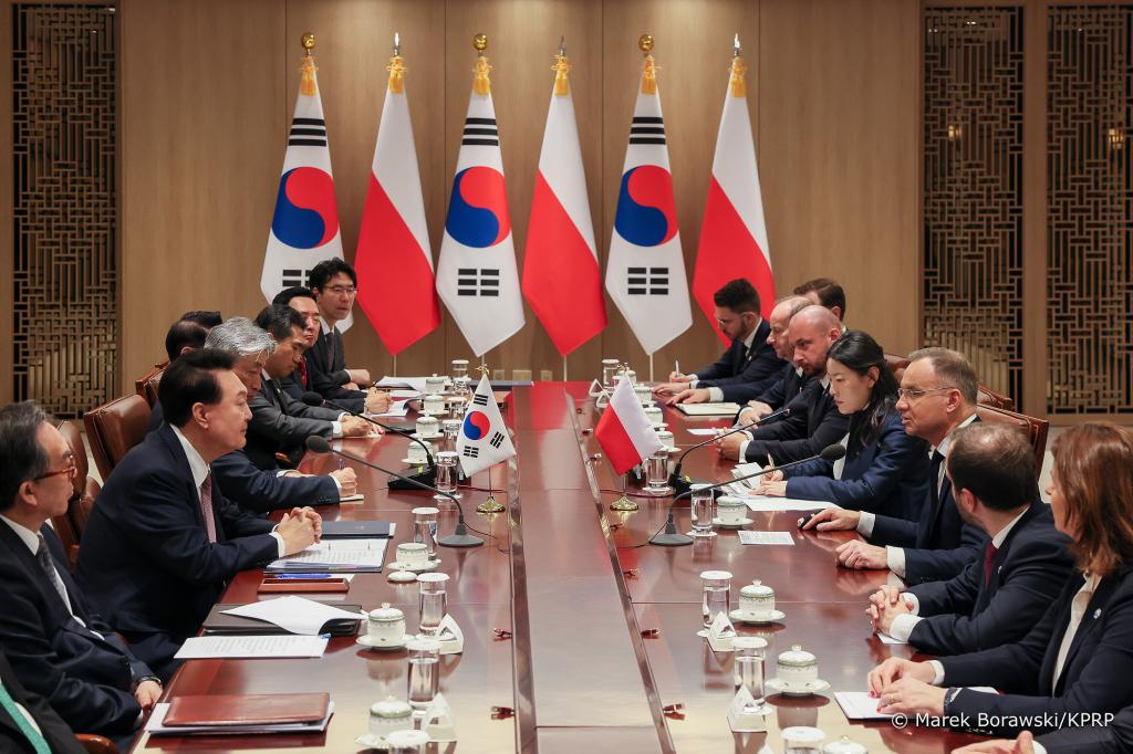 Andrzej Duda i Yoon Suk–yeol rozmawiali też „w cztery oczy”, a następnie przewodzili rozmowom delegacji obu państw.
