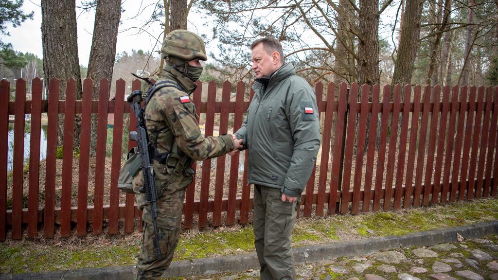 - Wszyscy obserwujemy to, co dzieje się za naszą wschodnią granicą. Widzimy, jak władcy Kremla postanowili odbudować imperium rosyjskie, jak atakują inne państwa. Atak na Ukrainę jest tego doskonałym przykładem. Widzimy też, że Polska jest atakowana. Atakowana w sposób hybrydowy od 2021 roku. I właśnie atakowana tak, że musi być broniona tu, na granicy. Bo ten atak nastąpił z terytorium Białorusi. Został dokonany przy użyciu migrantów zaproszonych przez reżim białoruski, a następnie rzuconych na granicę, tak żeby próbowali nielegalnie przekroczyć granicę z Polską. Granica została utrzymana dzięki służbie funkcjonariuszy Straży Granicznej, żołnierzy Wojska Polskiego, dzięki współpracy służb - mówił podczas spotkania z żołnierzami i funkcjonariuszami wicepremier M. Błaszczak.